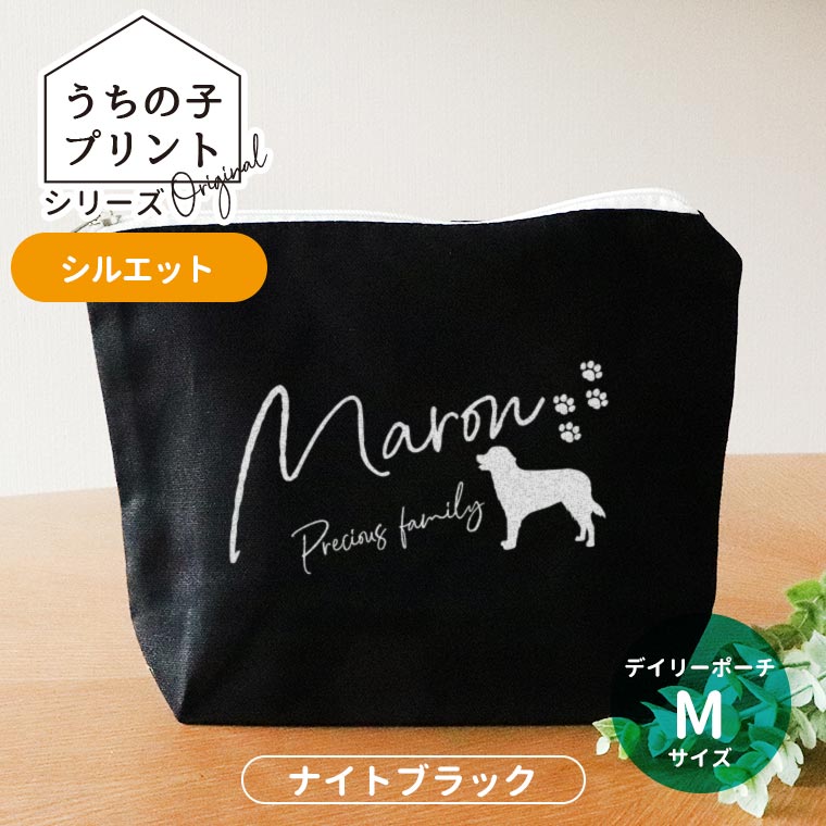 うちの子プリントシリーズ シルエット デイリーポーチ ナイトブラック Mサイズ アンシャンテラボ / ポーチ オリジナルポーチ オ...