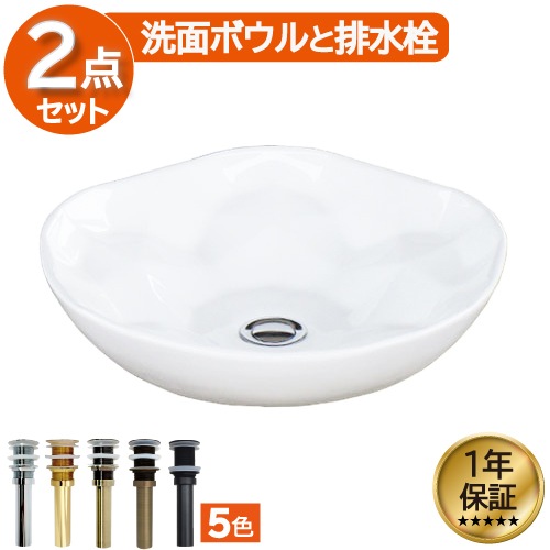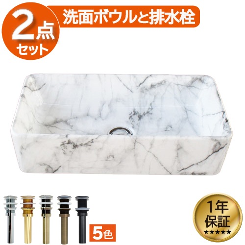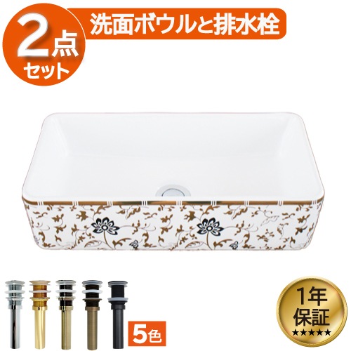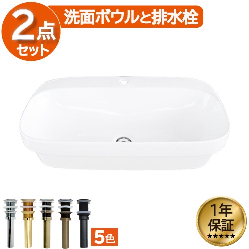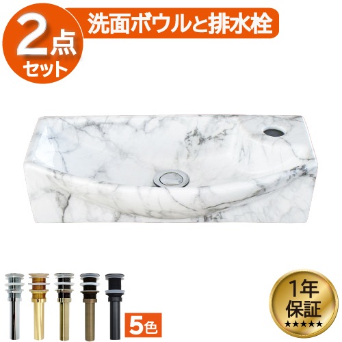 洗面台 洗面化粧台 陶器洗面ボウル+化粧台+単水栓+プッシュ式排水栓+トラップ 5点セット VIC-27 INK-0501062H...
