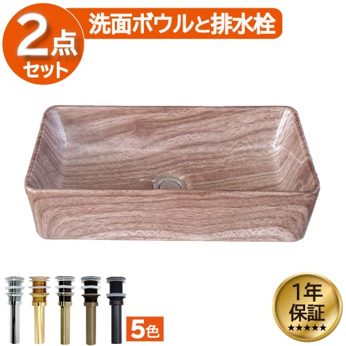 洗面ボウル 陶器 四角型 置き型 オンカウンター 置き型 ベッセルシンク 木目柄 オーバーフロー無し 幅46×奥行22×高12cm...