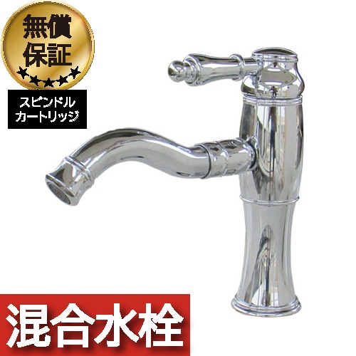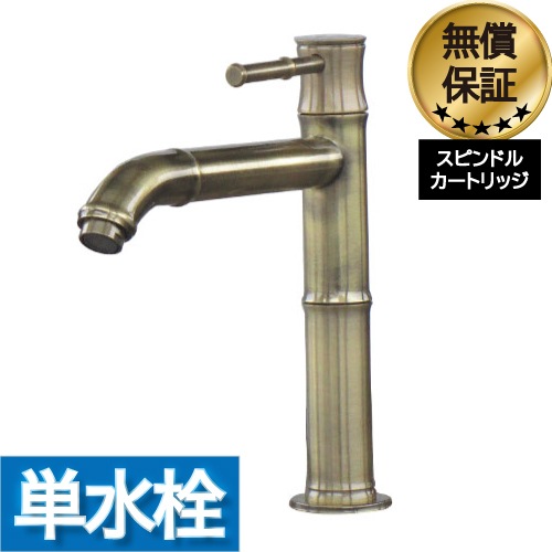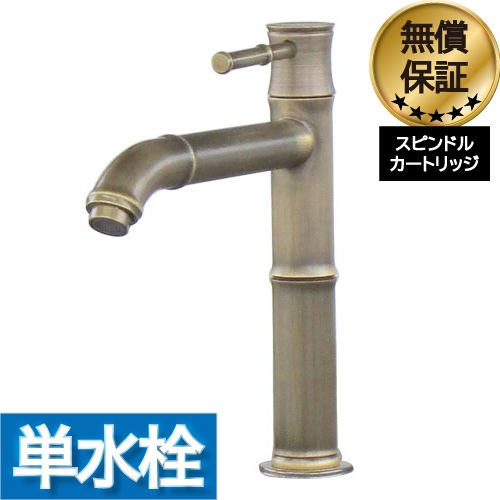 洗面水栓 蛇口 単水栓 シングルレバーハンドル アンティークゴールド(古金) バンブー [奥行3.5×吐水口高22.5cm] IN...
