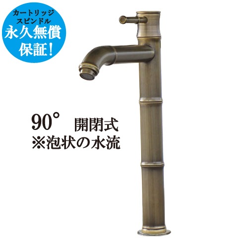 洗面水栓 蛇口 単水栓 シングルレバーハンドル アンティークゴールド(古金) バンブー [奥行3.5×吐水口高13.5cm] IN...