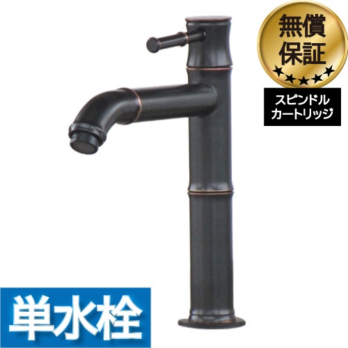 洗面水栓 蛇口 単水栓 シングルレバーハンドル ブロンズ(古銅) バンブー [奥行3.5×吐水口高22.5cm] INK-0302...