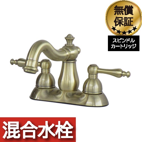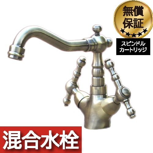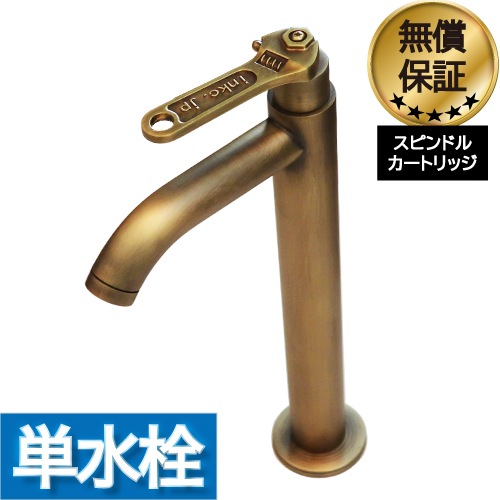 洗面水栓 蛇口 水栓金具 単水栓 クロスハンドル アンティークゴールド(古金) [奥行15.5×吐水口高9cm] INK-0302...
