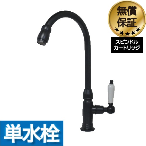 洗面水栓 蛇口 水栓金具 単水栓 シングルレバーハンドル 陶器(スパウト可動式) ブラック(黒) 奥行19×吐水口高23cm IN...