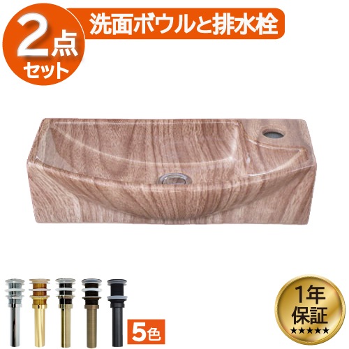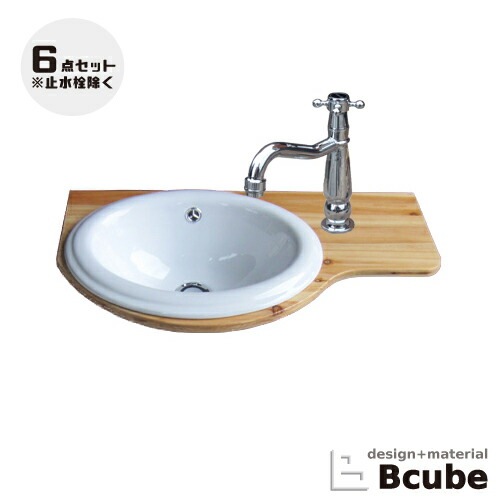 洗面台 洗面化粧台 陶器洗面ボウル+化粧台+単水栓+プッシュ式排水栓+トラップ 5点セット VIC-26 INK-0501062H...