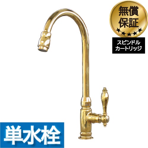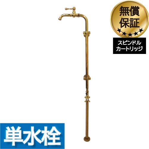 洗面水栓 蛇口 水栓金具 単水栓 ストレート止水栓 セット ゴールド(金) [幅27×吐水口高111.1cm] INK-03020...