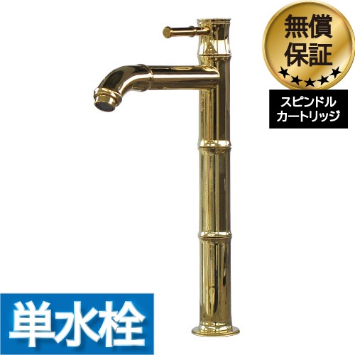 洗面水栓 蛇口 単水栓 シングルレバーハンドル ゴールド(金) バンブー [奥行3.5×吐水口高22.5cm] INK-03021...