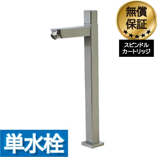 洗面水栓 蛇口 水栓金具 単水栓 スクエアハンドル シルバー(銀) [奥行13×吐水口高28cm] INK-0302094H