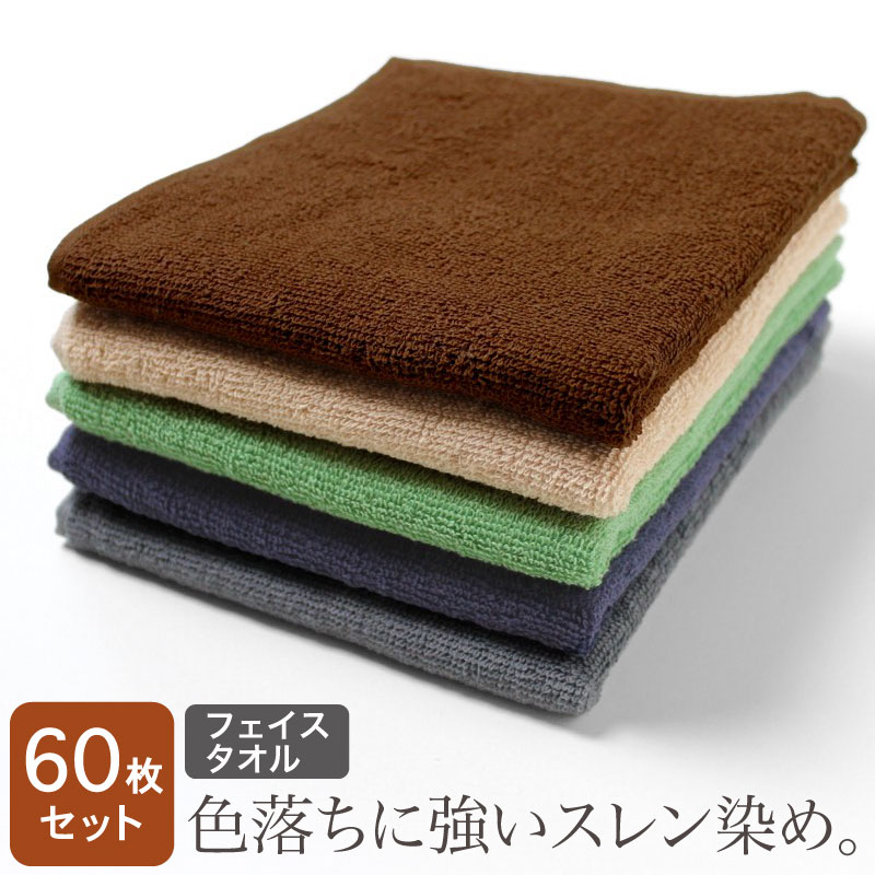 業務用 スレン染め フェイスタオル・240匁(シックカラー)・同色60枚セット