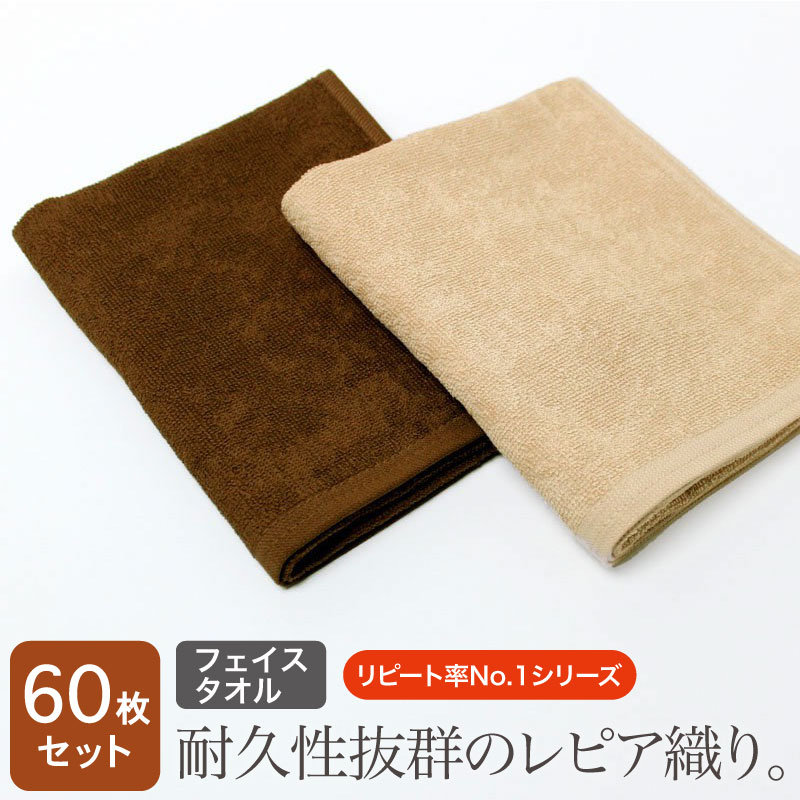 業務用 レピア織り スレン染め フェイスタオル・260匁 (ブラウン系)・同色60枚セット