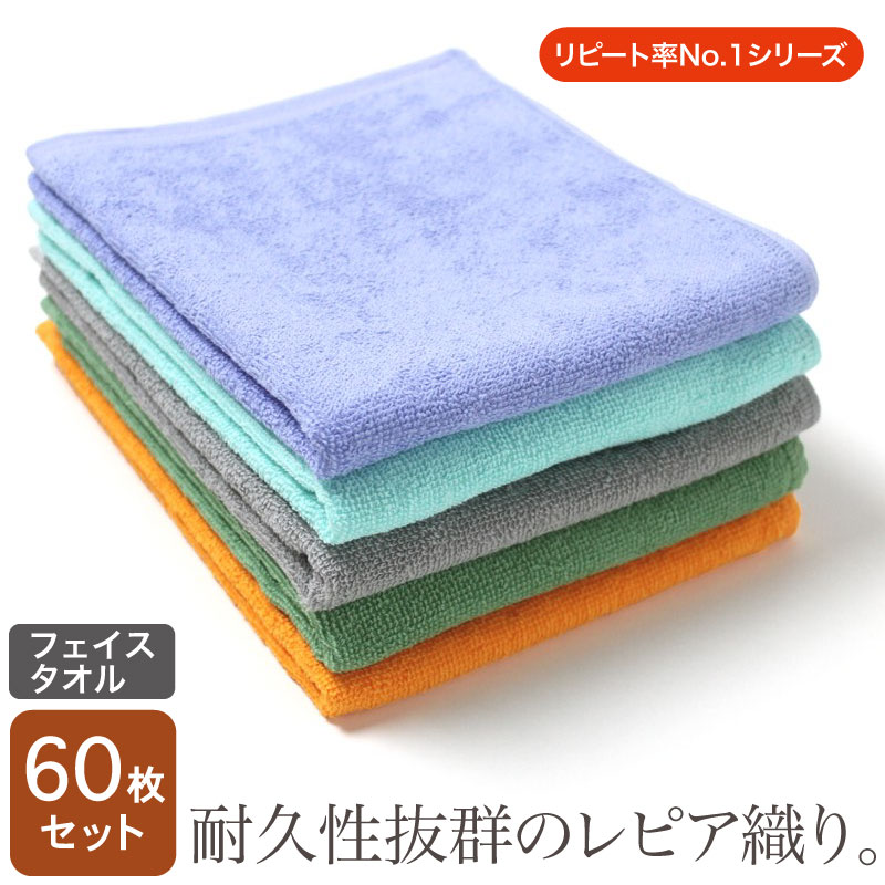 業務用 レピア織り スレン染め フェイスタオル・260匁 (カラー)・同色60枚セット