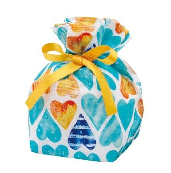 巾着 リボン 特小 水色ハート柄 FP(1セット20枚入~)