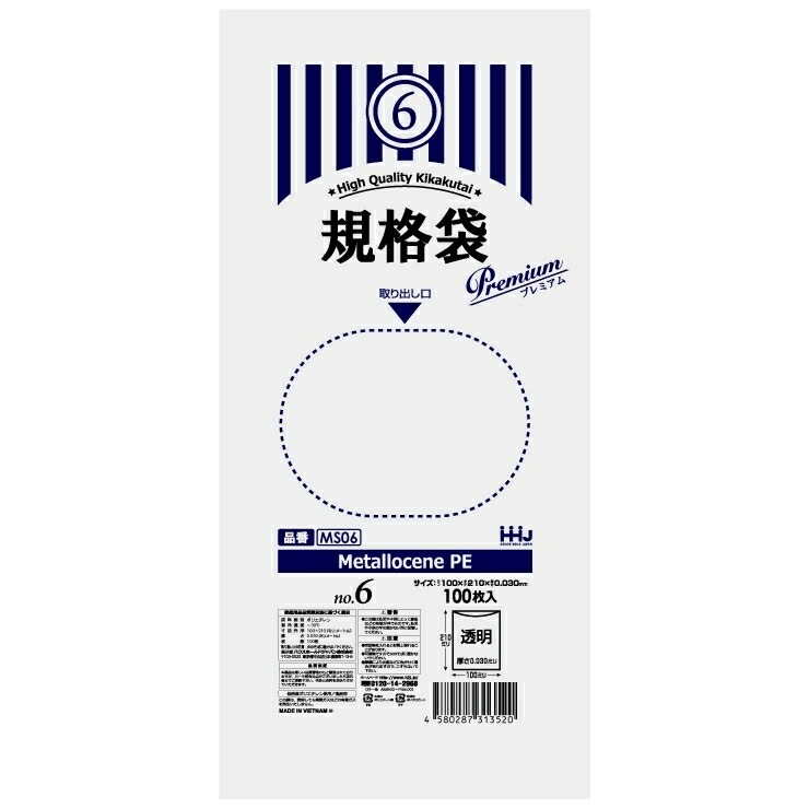 【法人様限定】規格袋 高強度素材配合(LL+Meta) No.6 0.03×100×210mm 100枚×160冊 MS06 3ケ...
