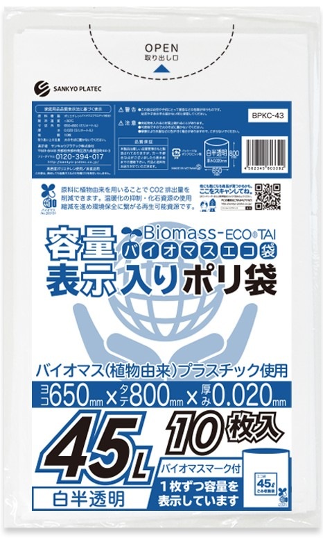 容量表示入りポリ袋45L 0.015mm厚(10枚×80冊)