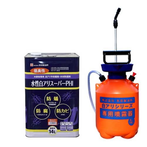 シロアリ駆除剤 水性白アリスーパーPHI 希釈済み 14L オレンジ+4L専用噴霧器セット