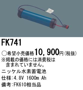 <販売終了>パナソニック FK741 誘導灯・非常用照明器具-交換電池 バッテリー