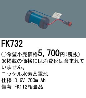 <販売終了>パナソニック FK732 誘導灯・非常用照明器具-交換電池 バッテリー