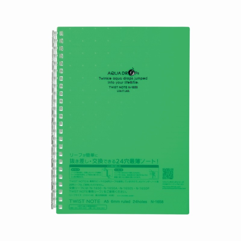 リヒトラブ AQUA DROPs ツイストノート 黄緑A5・S型 24穴 黄緑 N1658-6