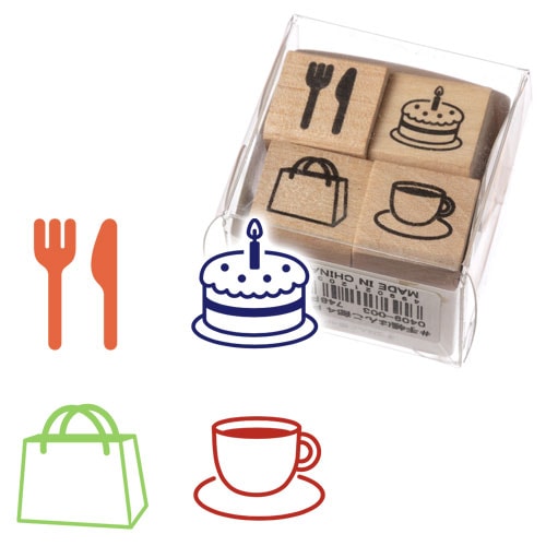 手帳はんこ部 食事 (0409-003) ミニはんこ4個セット 手帳やふせんに 簡単スケジュール管理 ラバースタンプ こどものかお...