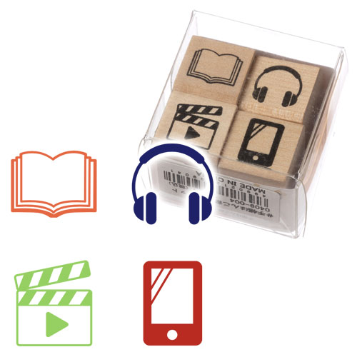 手帳はんこ部 お買い物 (0409-007) ミニはんこ4個セット 手帳やふせんに 簡単スケジュール管理 ラバースタンプ こどもの...