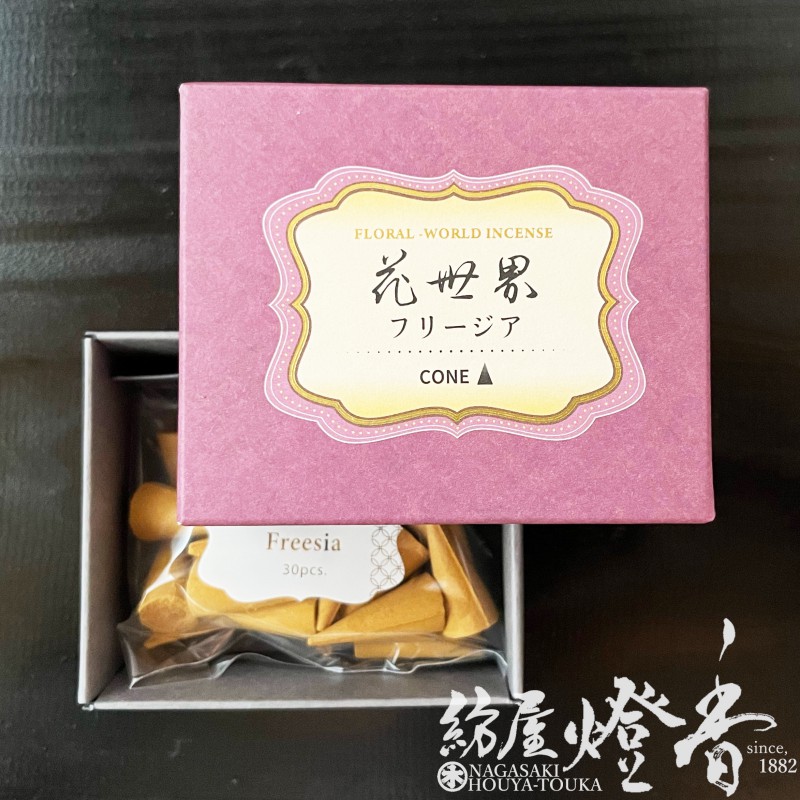 お香/くつろぎ『六種花世界-FLORAL WORLD-【フリージア-FREESIA-/CO30粒入】コーンタイプ徳用箱』松栄堂