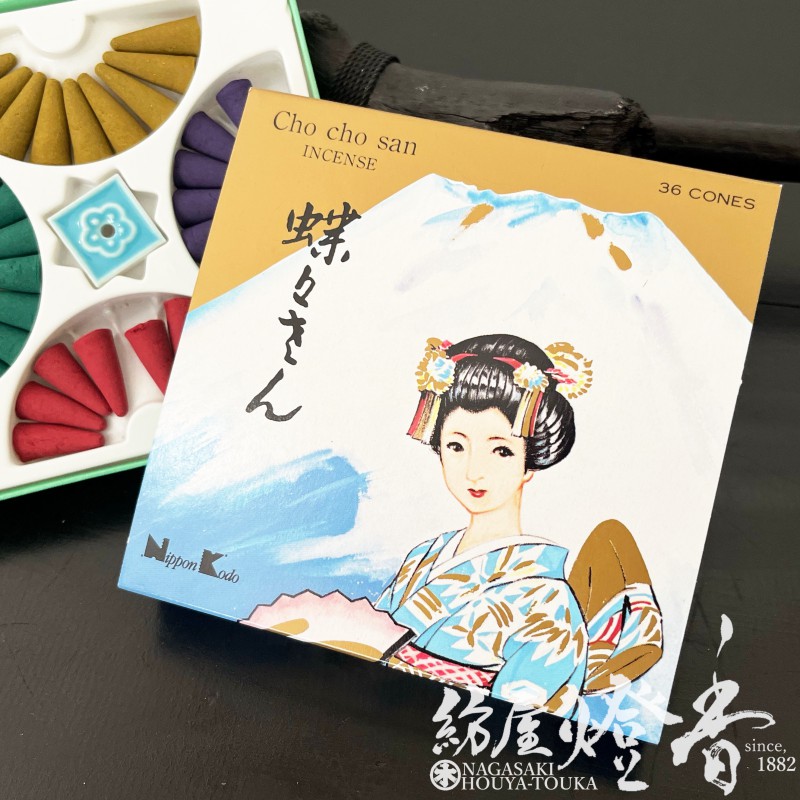 お香/お部屋焚『日本の香り【蝶々さん-Chochosan-/CO36個4種アソート】コーン型紙箱入[陶製香立付]』日本香堂