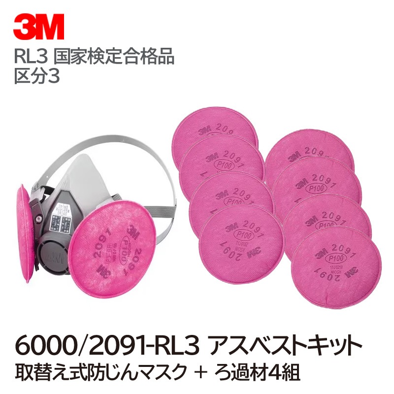 3M 取替え式防じんマスク 6000/2091-RL3 ミディアム アスベストキット (防じんマスク+ろ過材4組セット)国家検定合...