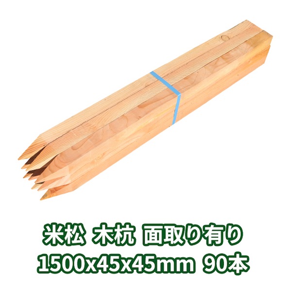 測量杭 木杭 1500mm×45mm角 面取り有り 90本入り 米松 1本約556円 条件付き送料無料