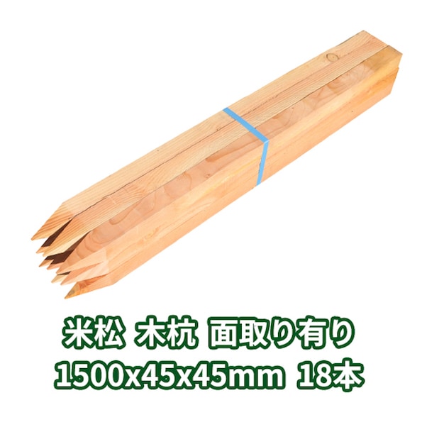 測量杭 木杭 1500mm×45mm角 面取り有り 18本入り 米松 1本約656円 条件付き送料無料