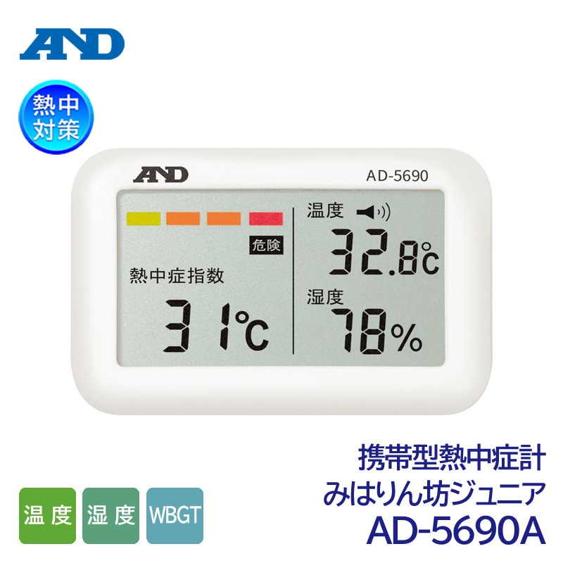 A&D 携帯型熱中症計 みはりん坊ジュニア AD-5690A (温度/湿度/WBGT/熱中症指数計/熱中症対策)