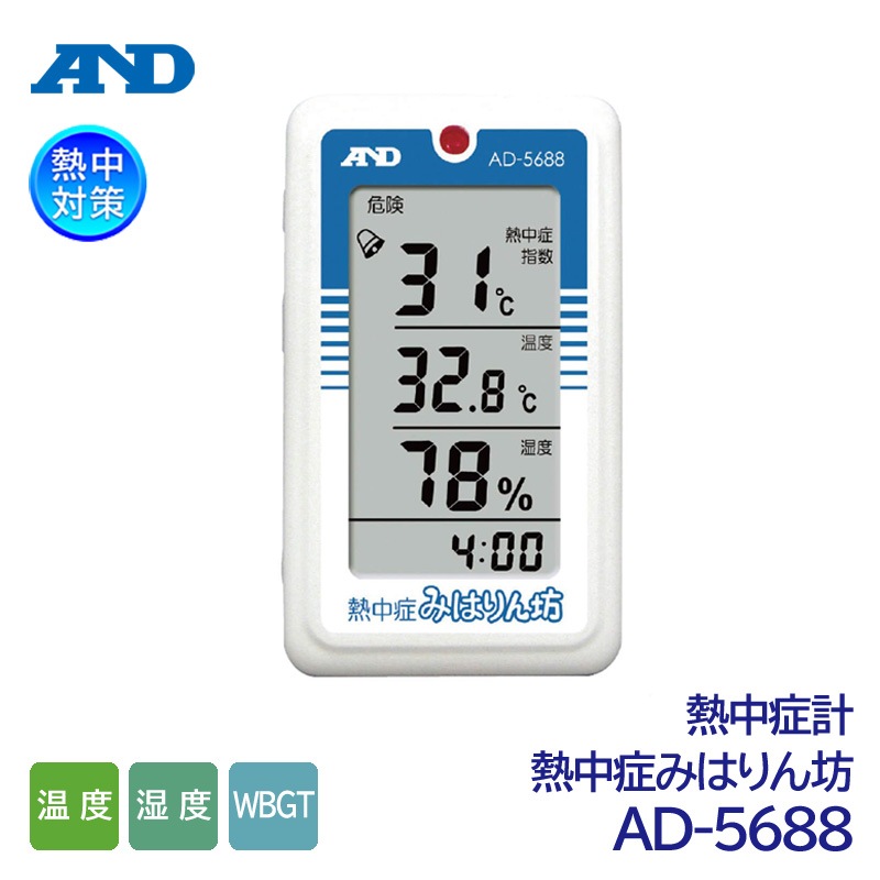 A&D 携帯型熱中症計 熱中症みはりん坊 AD-5688 熱中症指数モニター アラーム機能付 (温度/湿度/WBGT/熱中症対策)