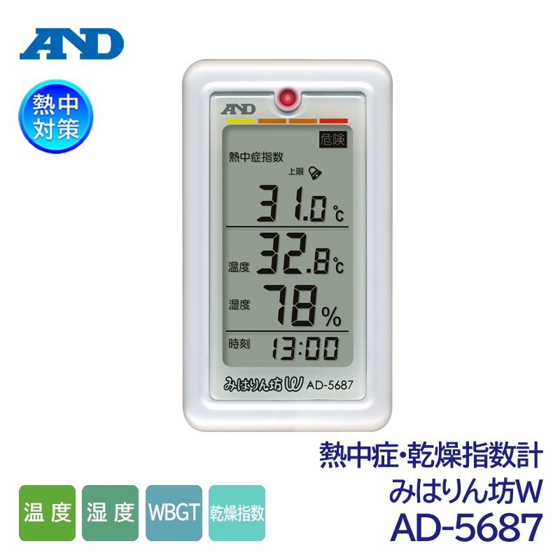 A&D 1台2役の熱中・乾燥指数測定計 みはりん坊W AD-5687 (温度/湿度/WBGT/熱中症指数/熱中症対策/乾燥指数)
