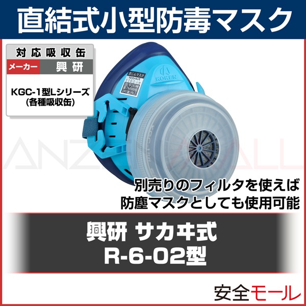 【興研】直結式小型防毒マスク R-6-02型【ガスマスク/作業用/病院/解体/現場】