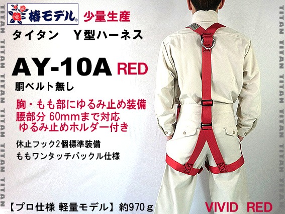 【送料無料】AY-10A 胴ベルト無し レッド赤 Mサイズ 【最新モデルタイタン 椿モデル Y型フルハーネス】(ハーネス安全帯) ...