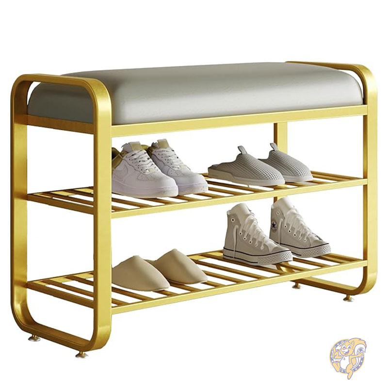 シューズベンチ 玄関ベンチ シューズ収納付き クッション付き モダンシューズラックベンチ 玄関 廊下 玄関用布張り 3 段メタルシ...