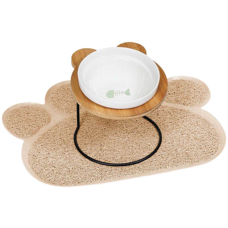 えさ皿 ランチョンマット 肉球型 セット 猫 犬 食器 えさ 皿 餌入れ フードボウル ペット ご飯皿 水飲み マット 食べやすい...