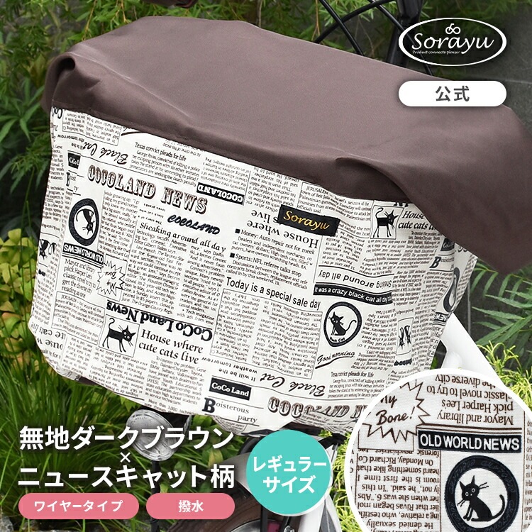 レギュラーサイズ/無地ダークブラウン×ニュースキャット柄バスケットカバー