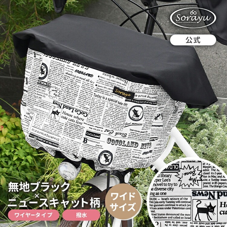 ワイドサイズ/無地ブラック×ニュースキャット柄バスケットカバー