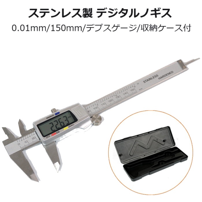 高品質ステンレス製 見やすいデジタルノギス 0.01mm単位 愛車のパイプ径や長さの測定に重宝