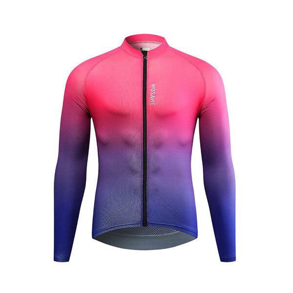 メンズ 多機能サイクリングウェア 爽やかグラデーションプリント 伸縮性袖口 伸縮性裾周り 高伸縮性スリムフィット 反射板つき 後部...