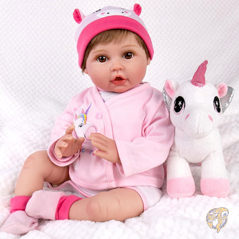 リボーンベビードール 55cm リアルな新生児女の子 本物そっくりの重みのある女の子の赤ちゃん人形 ピンクユニコーン リアルな女の...