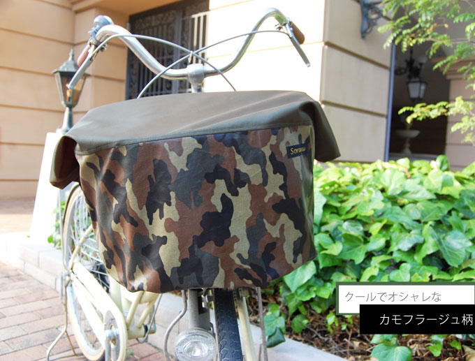 カジュアルでかっこいい!Dカーキ×カモフラージュ柄バスケットカバー(自転車前かごカバー)