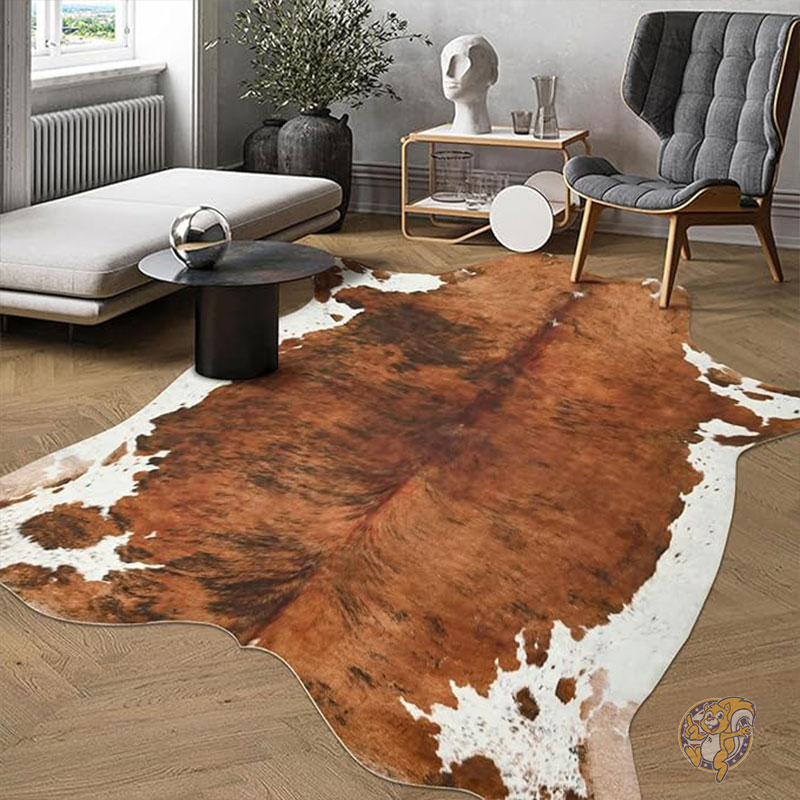アニマルプリント ラグ カウ柄 プレミアムフェイクカウハイドラグ 牛革エリアラグ 1.8 x 1.58m アニマルプリントファーラ...