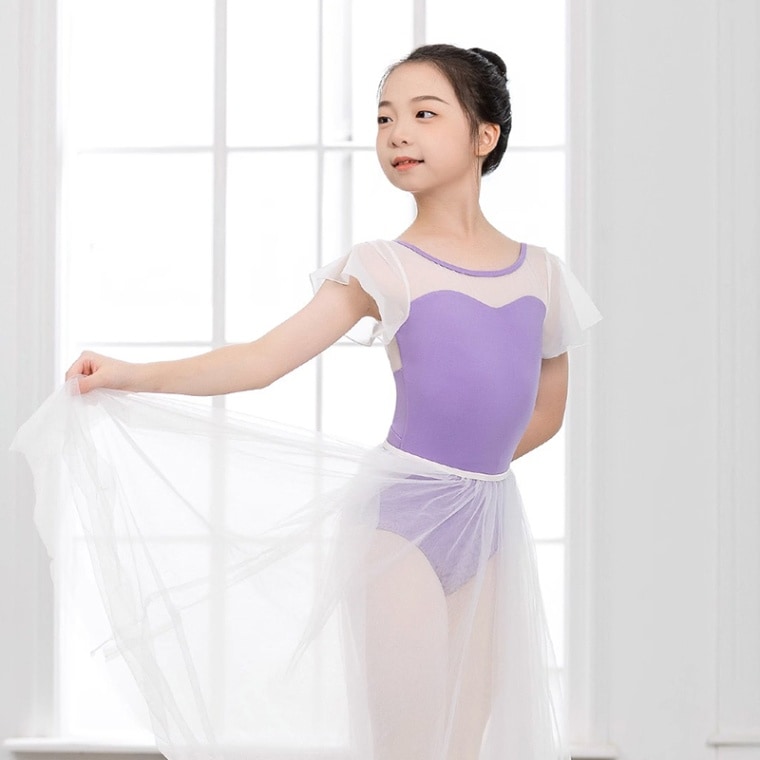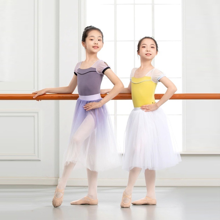 バレエロングスリーブレオタードスカート付ジュニア3色展開 SIK1253