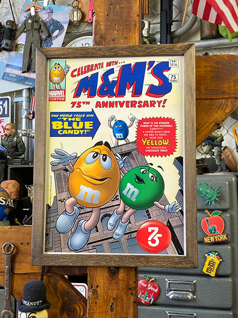 ポスターフレーム (m&m\'s/75THアニバーサリー THE BLUE CANDY) ポスター&木製フレームのセット