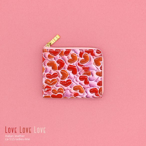 【ハートがいっぱい詰まった財布】イタリアンレザー エナメル コンパクト 財布 レディース【ca-505-lovelovelove】