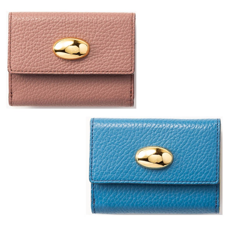 レディース コンパクト三つ折財布 日本製 バルサミックパープル×ワインカラー/ブルー×イエロー