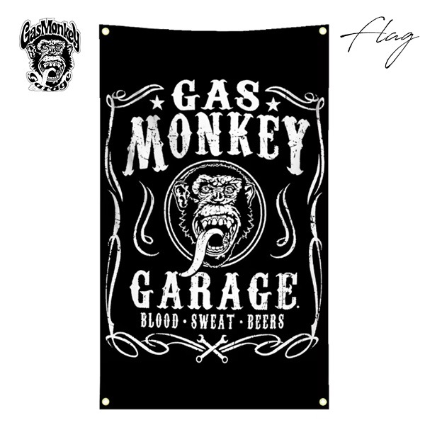 ガスモンキー バナー ロゴ フラッグ ブラック GAS MONKEY GARAGE 壁掛け インテリア 大判 旗 ディスプレイ ウ...