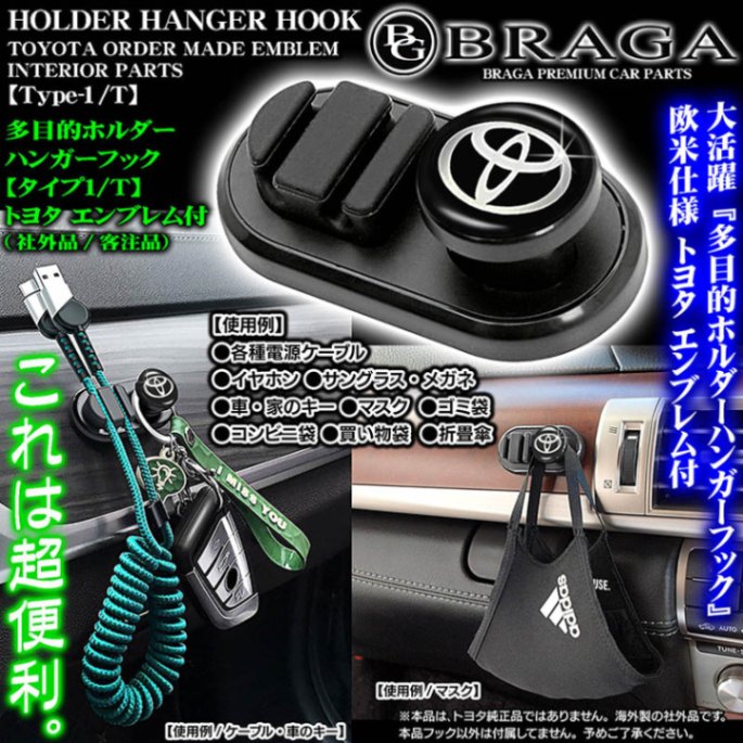 ノア/ヴォクシー/エスクァイア/多目的ホルダーハンガーフック/トヨタTマークエンブレム付/客注品[タイプ1/T]ケーブル マスク ...