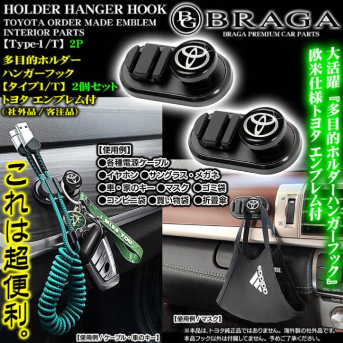 C-HR/ランクル/プラド/RAV4/多目的ホルダーハンガーフック/トヨタTマークエンブレム付/客注品/2個セット【タイプ1/T】...